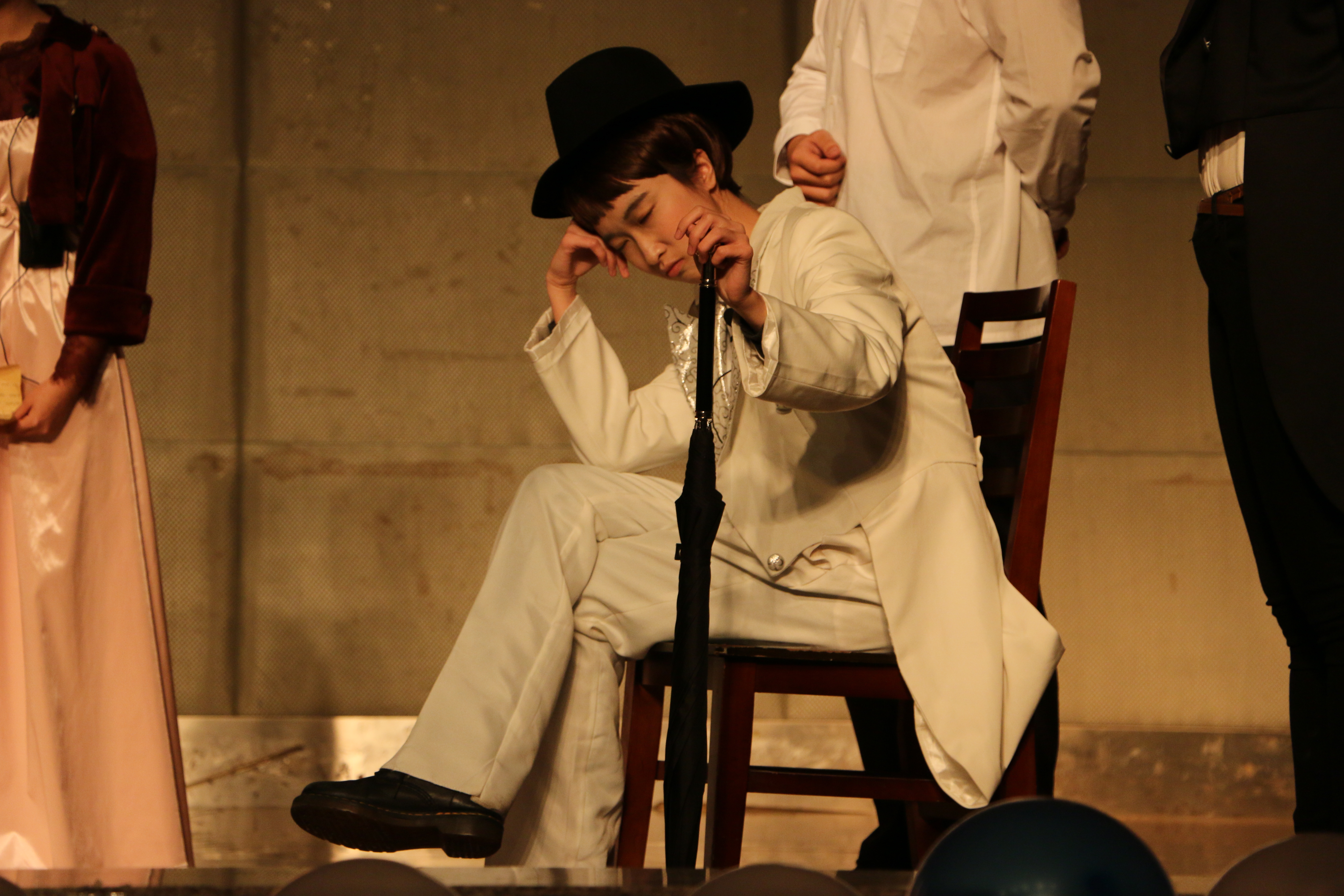 初赛时主人公梅勒斯是由日语班的吴铮同学配音的,语调语速表现力十足。但决赛中的梅勒斯的配音是由主演自己完成的。“其实会有些兼顾不暇。剧中有一段内心独白,是由录音放出来的。那一段动作非常多,我常常顾得上说词,顾不上做动作。但老师建议要自己念词,这样会显得比较流畅完整。”担任男主角的浩百同学说道,“梅勒斯是一个充满正义感的人,很荣幸能出演这样的角色。”