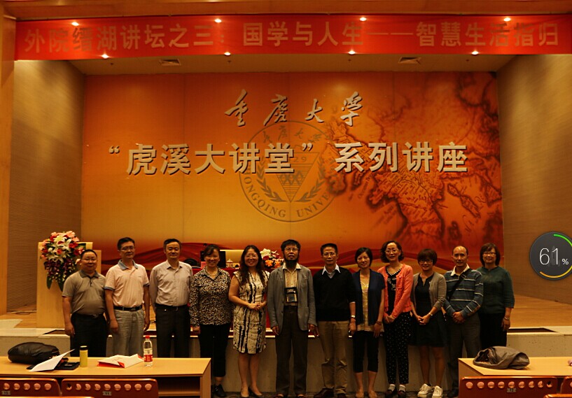 阴雨绵绵的重庆,淅淅沥沥的秋雨浇灭了夏日的炎热,但熄灭不了师生对国学的向往和热情。师生们陆陆续续来到讲座现场,敬畏而有序地就坐。下午3点,讲堂内已座无虚席。统战部陈跃英副部长,公共管理学院杨长福教授、基因工程研究中心主任夏玉先教授、基建规划处王俊才副处长等党外知识分子联谊会会员和98堂