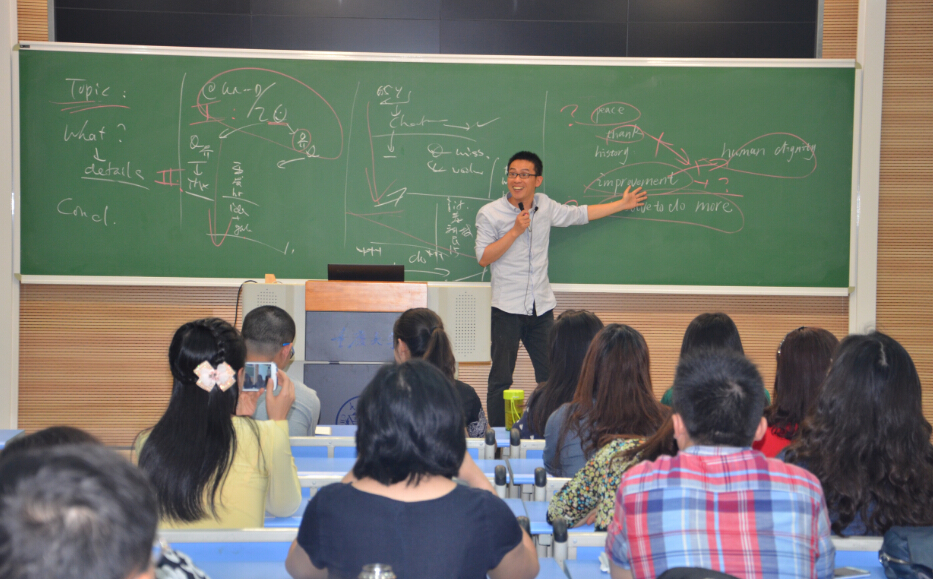 陈毅强老师本次参赛课程为《英语口译入门》。这门课重点在于交替传译中的记忆训练与笔记记录方法,针对英语专业二年级学生开设,要求学生要具有非常丰富的背景知识储备,清晰的逻辑结构框架,并要在本课程的学习过程中训练出良好的短期记忆力与良好的笔记记录习惯。在决赛的教学示范环节中,陈毅强老师选取了难度较高的联合国秘书长潘基文的一段讲话作为训练材料,他的讲解重点难点突出,思路清晰,逻辑性强,语言风趣幽默,对学生的表现能做出清晰的分析,给出中肯的反馈。课堂中良好的师生互动、真实的语言材料以及教师有建设性的指导激发了学生的学习兴趣,促进了学生的自我学习动力,展现了教师优秀的个人素质、教学素养,也真实呈现出了外语课堂教学的面貌,获得了专家的肯定。