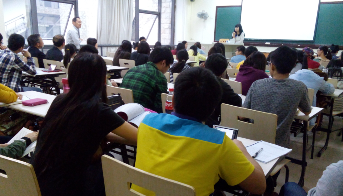 下午4点,读书会现场座无虚席,除日语系学生外,还有少部分其他院校的同学也赶来参加。陈爱华,杨红,王红,颜欢,杨庆庆等几位教师以及亦野博,赤松卫,木村宪史等三位外教分别与同学们相邻而坐。在系主任陈爱华老师的简短开场白后,主持人张祎诺简单介绍了《菊与刀》以及该作者鲁斯本尼迪克的背景,之后就进入了对本书中“等级制度”“耻的文化”“恩义与忠孝”“名誉与复仇”等主题的探讨。因为有许多一年级同学参会,读书会以中日双语的形式进行。大家积极发言,气氛热烈。研究生和本科生们提出的一些问题,引起大家的激烈讨论,几位老师和外教的发言更是引起了阵阵掌声。主持人在组织大家有序发言之外,也担负起翻译,解释的角色,使得一年级同学和外教之间也可以顺利交流彼此的看法。