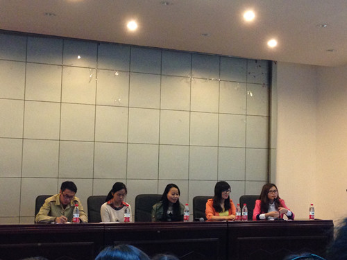 此次交流会请来了较有经验的10级学长学姐:英语系的张秀娟、徐霞学姐和马冲学长;日语系的张旭学姐以及德语系的张小文学姐。他们中有选了二专最后坚持下来,也有中途放弃的,也有没有选二专的,但到最后都取得了自己满意的结果,或保研,或进入了大型企业工作。学长学姐就自身经历给在座的大一学子一些经验,如:二专只是一个扩充知识面的平台;二专对于找工作有一定的帮助等。他们的经验使在座的大一学子受益匪浅。不少犹豫不决的同学已经做出了自己的选择。在提问环节,同学们就保研、跨专业考研、就业等方面积极提问,为萦绕在心头已久的疑惑寻求答案,学长学姐也给出了自己的建议和看法。