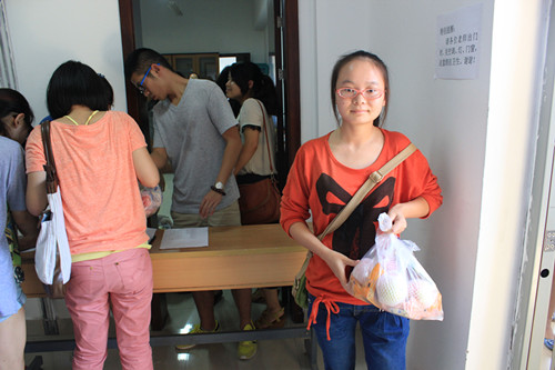 令同学们惊喜的是,因为中秋节即将来临,学院特地为每位同学准备了月饼和水果组成的大礼包,使很多第一次离家独立生活的同学感受到了98堂