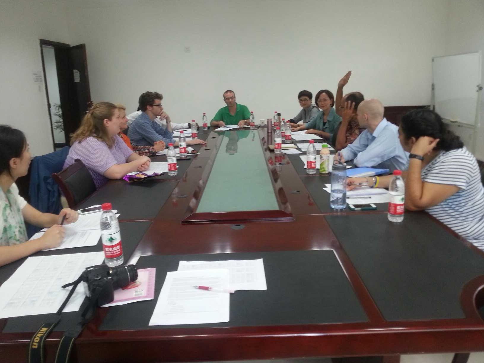 学生的基本情况。中外教师就课程的具体方案和教学计划进行了详细的讨论。此外,本次会议还就学生培训前的水平测试,以及培训后的效果评估,以及随堂观察等事项进行了讨论。