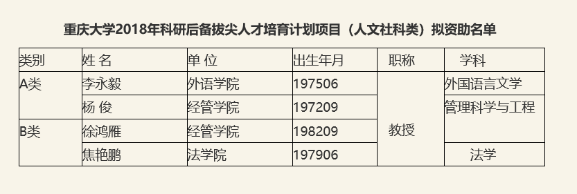 2018年5月30日,98堂 2018年“科研后备拔尖人才培育计划”项目(人文社科类)评审结果公示:立项资助指标为4项(A类人才、B类人才各2个资助指标),基地专职研究员李永毅教授获得其中的A类人才立项资助。