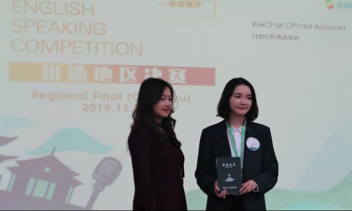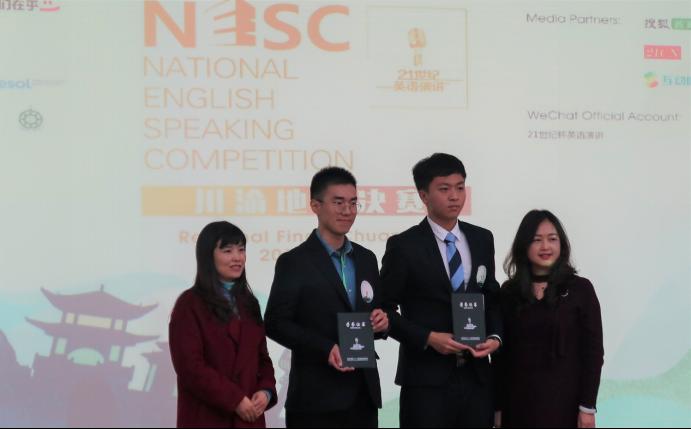 在当日的川渝赛区决赛场上,来自川渝地区各大高校的23位同学在演讲台上一展英姿,进行了激烈的角逐。此次演讲比赛环节包括以“No person is an island”为题的已备演讲,充满未知的即席演讲,以及灵活多变的现场问答。我校杨阳同学和翟诗文同学冷静审题,激情演讲,机智应答,凭借流畅自然的发音、大方得体的肢体语言、敏捷的反应能力等赢得了台下观众经久不衰的掌声,短时间内给评委和观众留下了深刻的印象,最终在激烈的比赛中取得可喜成绩。