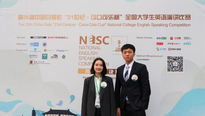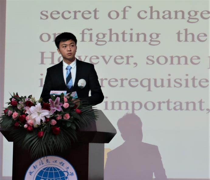承办的第25届中国日报社“21世纪·可口可乐杯”全国大学生英语演讲比赛川渝地区决赛在成都信息工程大学航空港校区图书馆国际报告厅隆重举行,我校软件工程学院2018级杨阳同学、98堂