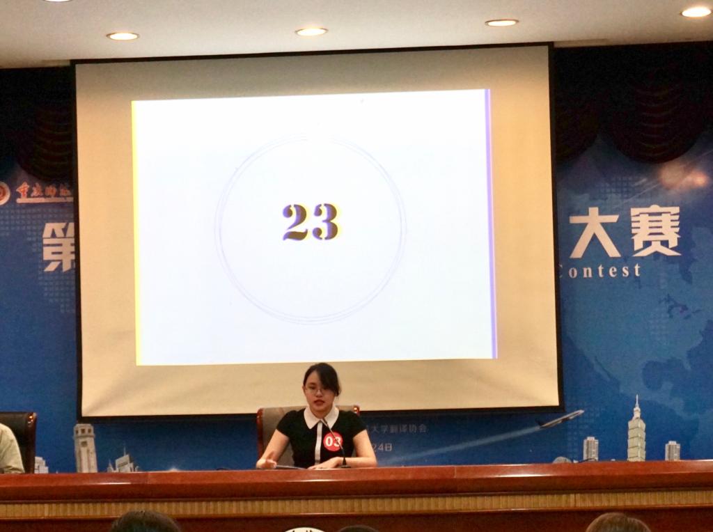 上午8:30,主旨口译比赛开始。第一二赛场同时进行比拼,每位选手共需进行两次翻译,先进行汉译英,然后再进行英译汉。每段录音播放时长为1分钟,转述时间为45秒。选手需将一分钟的录音内容以另一语言提炼简述。这对于选手的临场分析应对能力提出了极高的要求。我校的两位参赛选手凭借过硬的专业水平和良好的临场心态从容镇定地完成了高质量的转述。其中,英语专业张菁淳同学在激烈竞争中脱颖而出,以第一赛场第四名的佳绩成功晋级决赛。