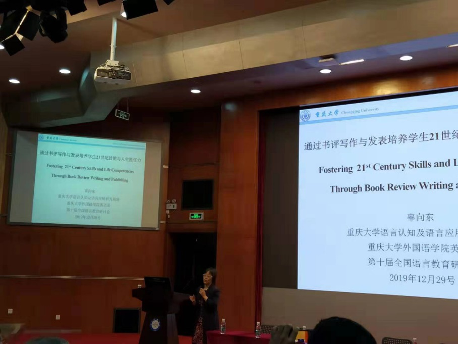 辜向东教授做了题为《Fostering 21st Century Skills and Competences through Book Review Writing》(通过书评写作与发表培养学生21世纪技能与人生胜任力)的大会发言,在短短二十分钟时间里,辜教授从较大篇幅资料中提炼出了创造性思维、批判性思维、学会学习、沟通、协作和社会责任这些技能对21世纪人才的重要作用,认为应以情感发展、信息素养和学科知识作为高等教育的基础,并现身说法,以实际案例展示如何通过指导研究生写作和发表SSCI书评培养21世纪技能和人生胜任力。辜教授的讲座以自传叙事探究的方式,记录旅程。在微观层面上对新手研究者有一些具体的相关启示,并在更宏观层面上对高等教育背景下的21世纪技能和人生胜任力的教学与评估提供了启示。讲座受到与会师生的欢迎和赞赏。