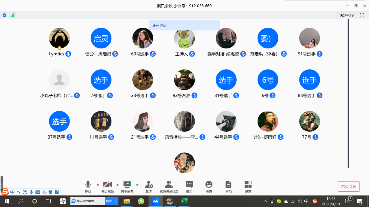 校选赛于2020年4月18日14:00和2020年4月19日14:30在“腾讯会议”线上平台分别进行了初赛和决赛。本次校选赛由98堂