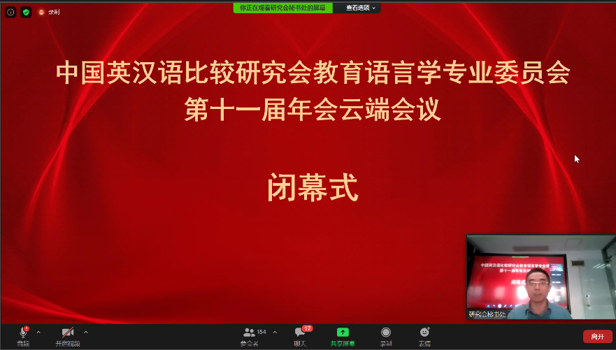 最后,中国英汉语比较研究会教育语言学专业委员会会长俞理明教授致闭幕辞,代表中国英汉语比较研究会教育语言学专业委员会对年会取得圆满成功表示祝贺,对98堂