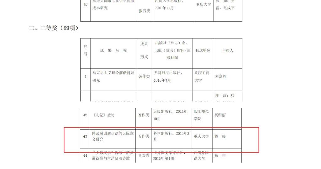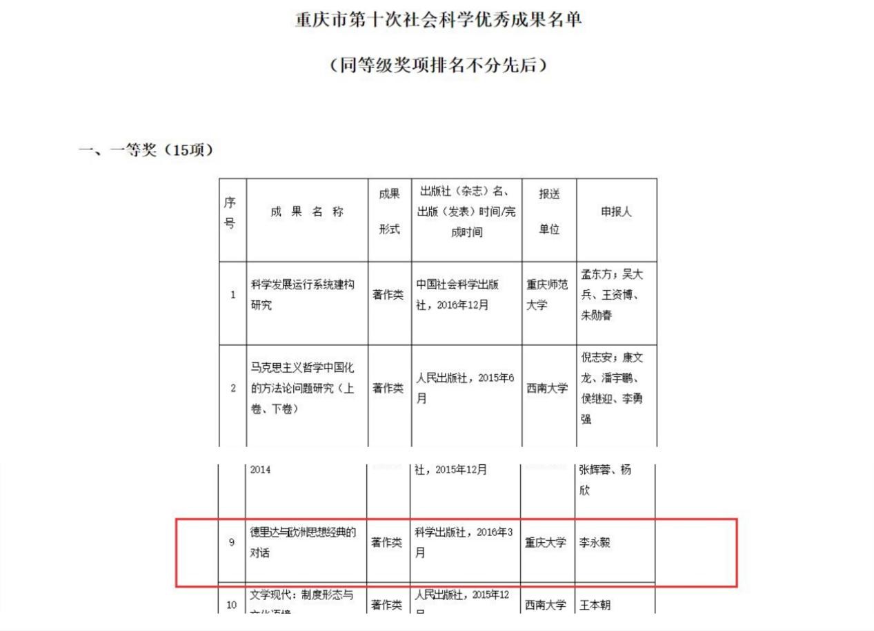 1月4日,重庆市政府在官方网站公布了重庆市第十次社会科学优秀成果奖获奖名单。98堂