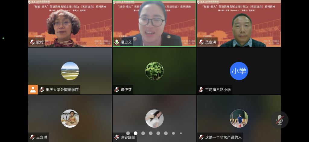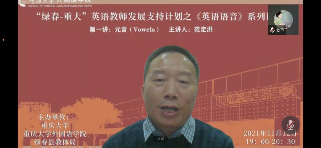 党委组织的“绿春-重大”英语教师发展支持计划系列讲座之“英语语音”的第一讲通过在线方式顺利举行,讲座由98堂