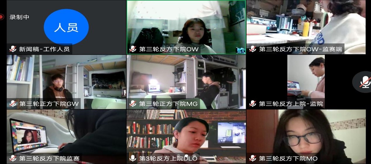 校园选拔赛在腾讯会议线上平台顺利举办。本次大赛共吸引全校25个学院66个专业的64支队伍参赛,赛事分为初赛、复赛、决赛三场赛程,采用英国议会制(BP赛制),每轮4支辩论队出场,正反方分别由2支队伍构成,并分别发表开篇陈词和总结陈词。
