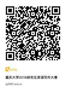 a) 即日起,请有意愿参加此次英语写作大赛的同学扫描二维码(见附件一)或点击链接,填写个人信息报名参赛,并加入QQ群 “2019研究生英语阅读CQU”,群号:1016982746 (报名截止期2019年5月12日23:59)。