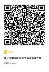 c) 即日起,请有意愿参加此次英语阅读大赛的同学扫描二维码(见附件三)或点击链接,填写个人信息报名参赛,并加入QQ群 “2019研究生英语阅读 CQU”,群号:617780513 (报名截止期2019年5月12日23:59)。