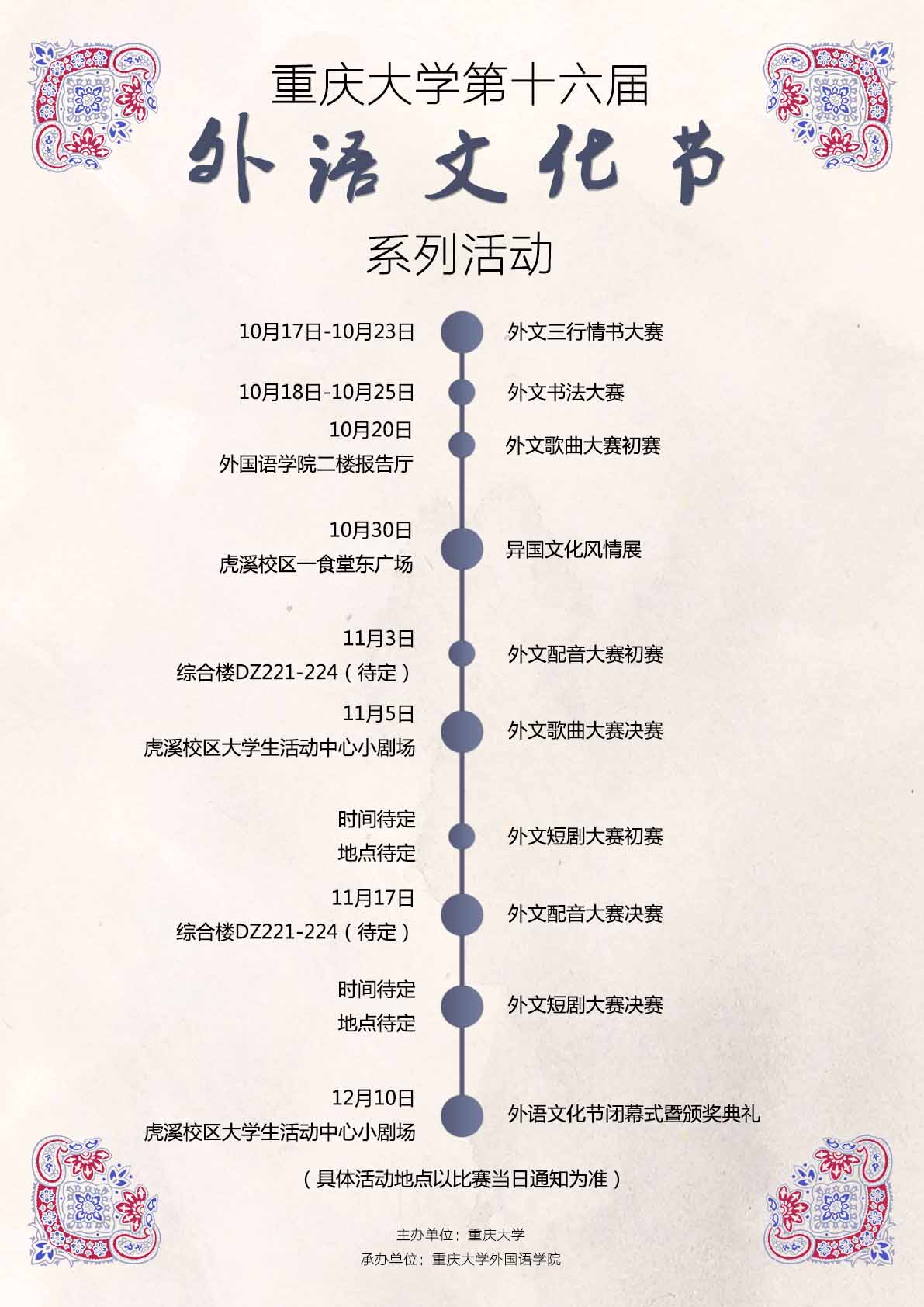 第十六届外语文化节”于10月中旬拉开帷幕。现将主要事项通知如下: