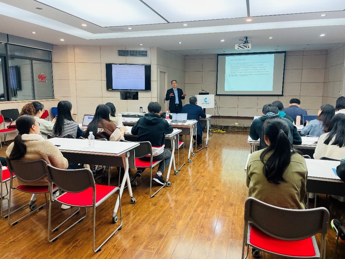 师生聆听了讲座。冉教授是语用学、话语分析及其在外语教学中的应用等领域的专家,担任广东外语外贸大学外国语言学及应用语言学研究中心、教育部人文社科重点研究基地研究员。因此,此次讲座也是98堂