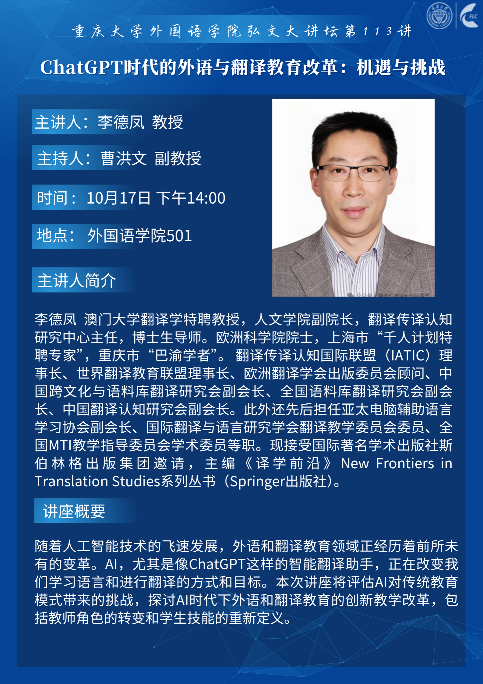 讲座|ChatGPT时代的外语与翻译教育改革:机遇与挑战