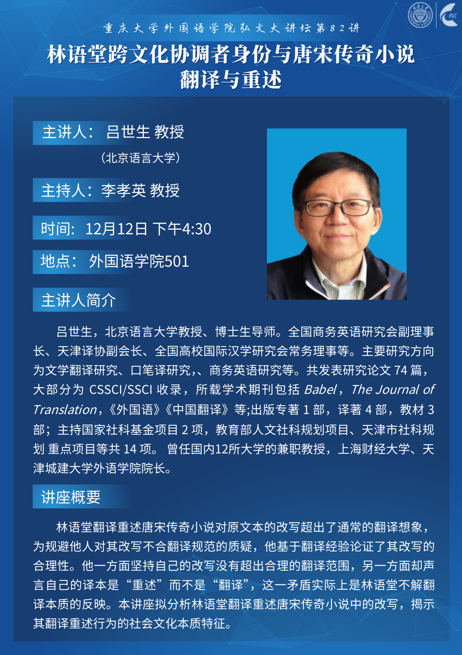 讲座|林语堂跨文化协调者身份与唐宋传奇小说翻译与重述