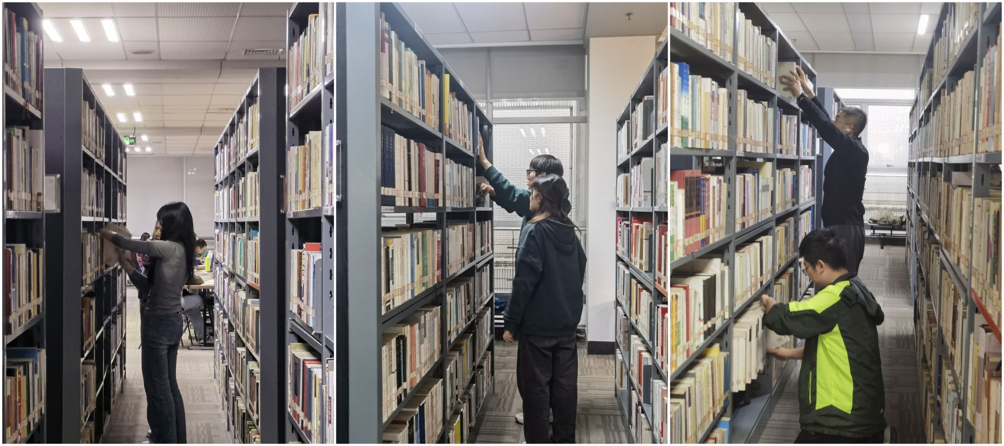 志愿者们首先在一楼综合服务大厅进行学习,了解工作内容与要领。随后分组前往各自岗位,在相关工作人员的指导下,深入了解自己岗位的具体职责,以认真负责的饱满精神状态在相关区域内开展工作。志愿者们分别前往了二楼社科阅览室A、B两区整理书架。他们时而踮起脚尖,时而弯腰半蹲,抱着一摞摞书籍穿梭于书架间,将厚重的书籍重新按序上架,为新的藏书腾出空间。