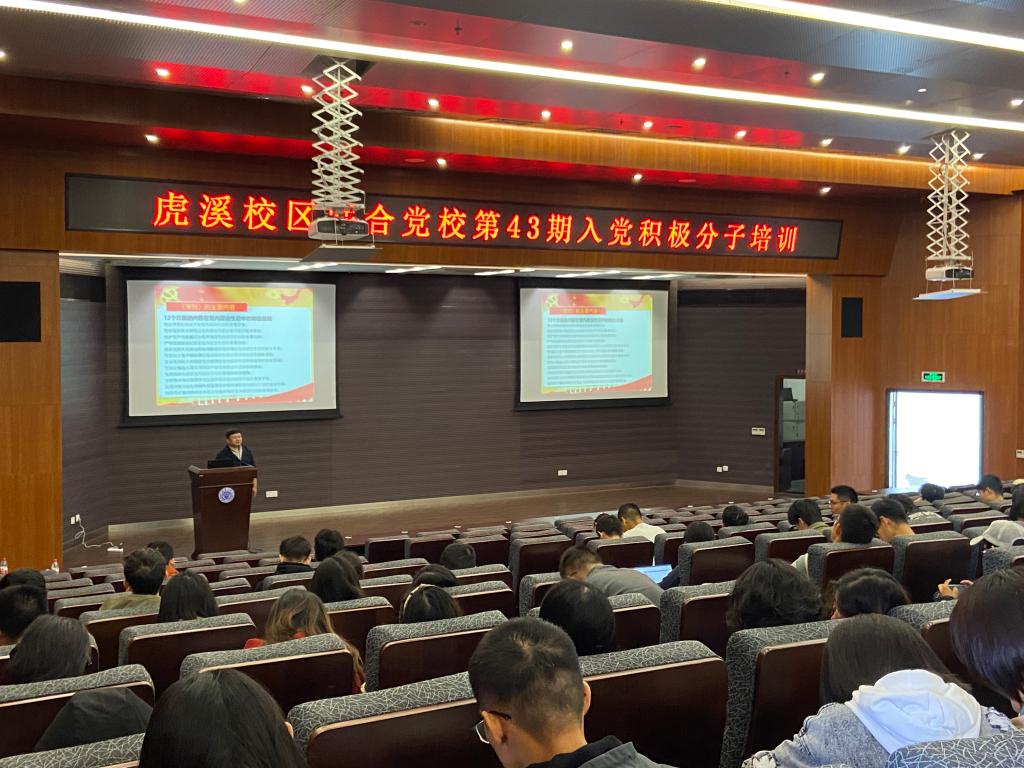 为深入学习贯彻习近平新时代中国特色社会主义思想,切实增强入党积极分子培训的系统性和规范性,进一步提高入党积极分子培训的质量和水平,2021年10月21日下午,虎溪校区联合党校第43期入党积极分子培训课堂教学第二讲在理科楼LA101顺利举行,来自虎溪党工委、化学化工学院党委、物理学院党委、数学与统计学院党委、98堂