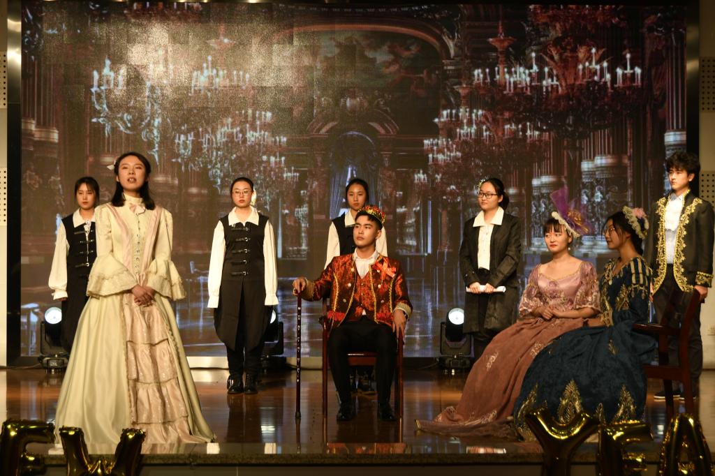 随后,晚会正式拉开帷幕。由杨秉森主领的劲爆开场舞《Ddu du Ddu du》和李佳芮主领的舞蹈《bon bon chocolat》成功点燃了全场的氛围,观众们掌声雷动。四位主持人在全场观众们地热切期盼中登台,分别用中英日德四种语言介绍,体现了外院独特风貌。刘鹭凡和姜博文同学的一首抒情歌曲《stay》又感染了全场观众。由廖国鹏等同学主演的默剧《小偷在哪儿》无声胜有声,尽管没有语言的表述,同学们却用出色的表现能力使观众们的心随着一波三折的情节上下起伏。吴娟老师主领的舞蹈《茉莉花开》给大家带来了一场视听盛宴。随着音乐,手执油纸伞的老师们翩翩起舞,优雅的舞步宛若茉莉花般清丽。