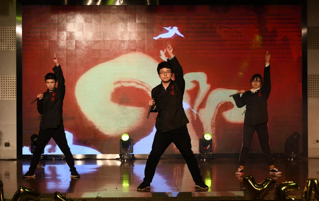 此后,德语系副主任毛亚斌老师进行了第二轮抽奖。孙海洋同学的Rap歌曲《哪吒》使大家再次被哪吒那份“我命由我不由天”的傲气深深震撼。梁博文等同学的双截棍表演《棍舞乾坤》舞出了中华儿女的气概,最后的绚烂火花也舞出了浓浓的新春气氛。周慧宇和樊知轩带来的相声《学外语》一捧一逗间笑点十足,幽默的把中文说出了各国语言的感觉,讲述了学外语中的各种有趣故事,观众们欢笑声不断。