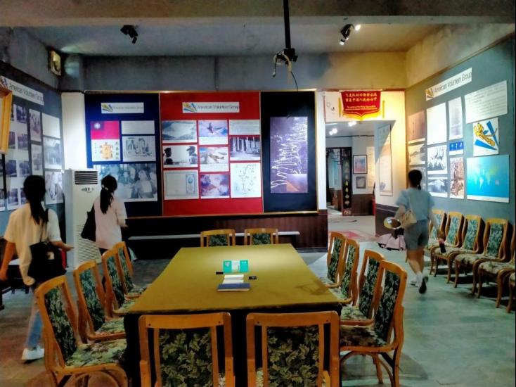 在准备离开博物馆的时候,实践团成员发现墙上还有一面锦旗。上面写着飞虎队的功勋将永远留在中国人民的心中。飞虎队在重庆、湖南怀化、昆明等地都有纪念馆。这些纪念馆以大量珍贵的图片、详实的史料和实物,全面梳理和展示"飞虎队"的传奇历程,重温波澜壮阔的抗战历程,回顾"飞虎队"的卓著功勋,铭记中美人民珍贵的传统友谊。