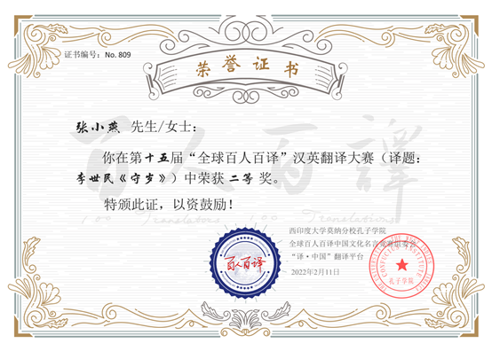 2月18日,第十五届全球“百人百译”翻译大赛评选结果揭晓,98堂