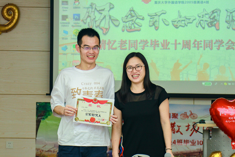 随后,便是一个别出心裁的“颁奖环节”。老师同学互颁奖状,通过赞词描绘记忆中的那个他。从“笑点最低奖”到“最帅老师奖”,从“最佳厨神”到“最佳博学多才老师”,千奇百怪的奖名之后缠绕的是同学与老师之间深厚的情义。