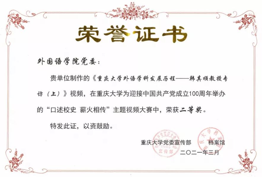 “口述校史 薪火相传”主题视频大赛中获得二等奖。