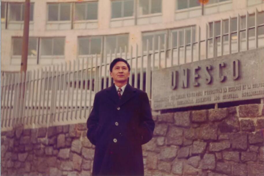 图|韩其顺教授曾任巴黎联合国教科文组织审校,1982年摄于教科文大门前