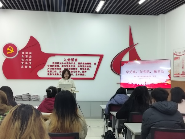 为了更好地学习领会二十大新党章的精神内涵,提升党员政治理论素养,增强党性修养,2024年12月12日下午,98堂 本科生党支部举办了“学党章 知党纪 强党性”主题党日活动,组织支部党员集体学习了《中国共产党章程》。