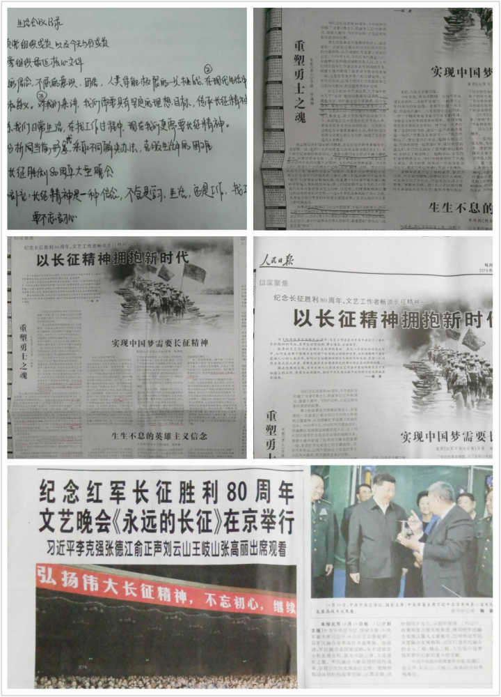 学习会采用了主题式阅读、分享发言和书记点评的方式进行。支部书记提前准备了长征精神、四个意识和从严治党三个主题的人民日报和重庆日报。参加学习会的同学分成三个小组各阅读一个主题。阅读后,同学们从内容要点和自身体会两个角度进行分享发言。在发言过程中,支部书记再次强调重点和同学们发言中的亮点。