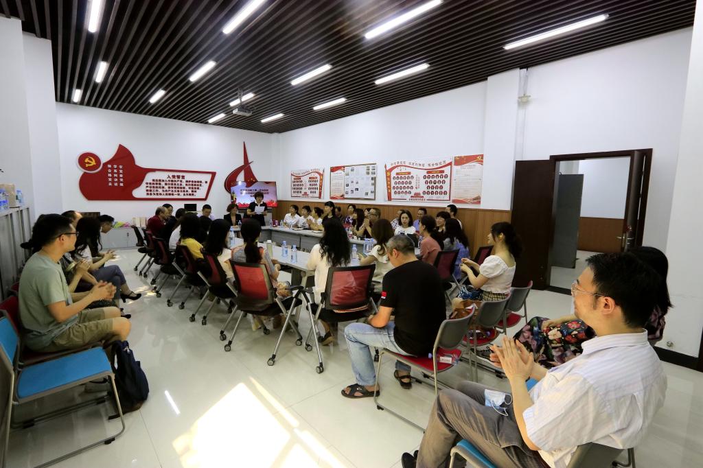 首先,李小辉副院长介绍了大学英语教工第一支部的基本情况和创建过程,以及这两年所取得的各项成绩。接着,支部书记温忠义同志做了以“发挥党建育人功能 开拓创新’七个有力’”为主题的创建工作汇报。组织部魏群义同志听了汇报后,对支部创建表示认可并介绍了98堂