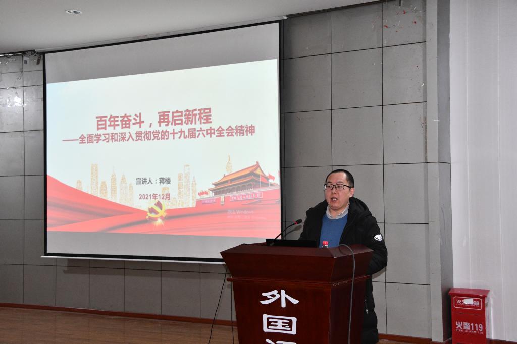 在学院楼二楼多功能厅举行了党的十九届六中全会精神宣讲会,马克思主义学院宣讲团成员蒋楼博士应邀到98堂