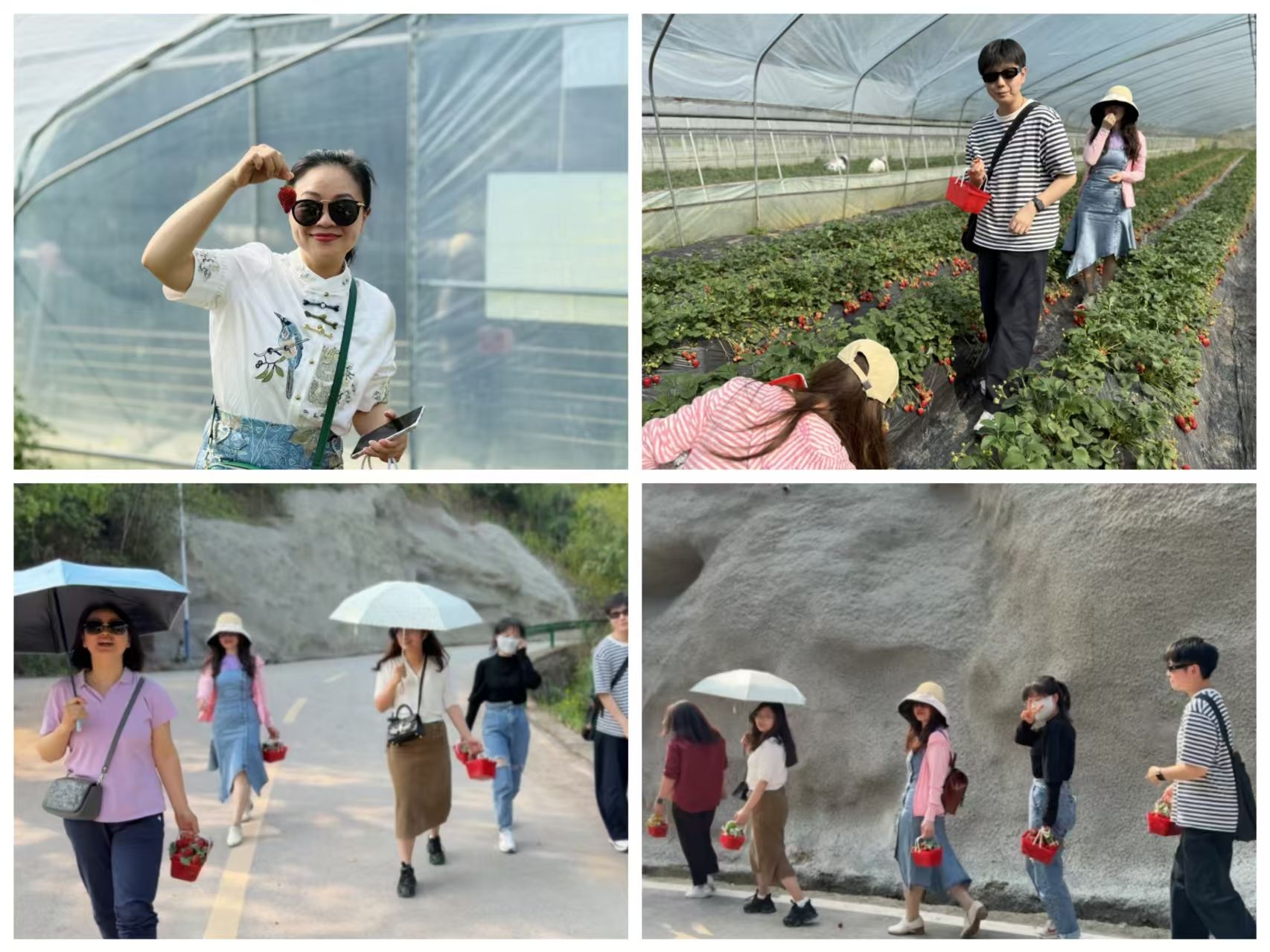 活动尾声,老师们来到柏林草莓园,亲手采摘鲜嫩欲滴的草莓,欢声笑语中为春日之旅画上甜蜜句点。此次春游活动不仅丰富了教职工的业余生活,更让大家在亲近自然、体验民俗中,增强了团队凝聚力与文化认同感。