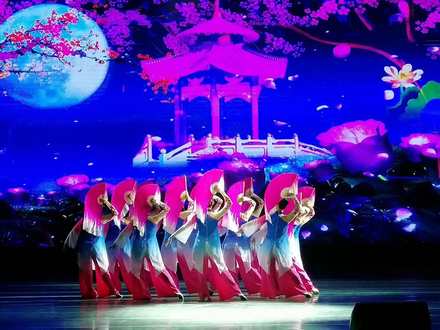 婷婷仕女舞飞天,窈窕秀色扑眼帘。彩扇蹁跹风拂柳,千娇百媚花争妍。在富有明快的节奏感和极具感染力的音乐声中,12名教师舞蹈演员手拿丝绸扇翩翩起舞,在扇子张弛有序、曲回萦绕的过程中,老师们如花般的笑靥更为这百般红紫的春天增添了不少秀色!优美绚丽的舞姿犹如花朵盛开般变幻,博得了全场阵阵掌声,为精彩的晚会画上了圆满的句号。
