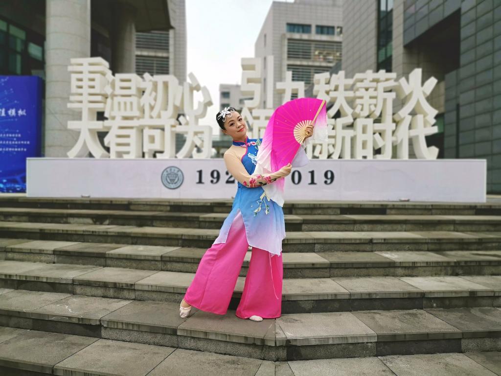 校工会教职工舞蹈协会的会长,带领着舞蹈协会的姐妹们,把今年新排练的古典扇子群舞《秀色》作为压轴舞蹈,带回到98堂