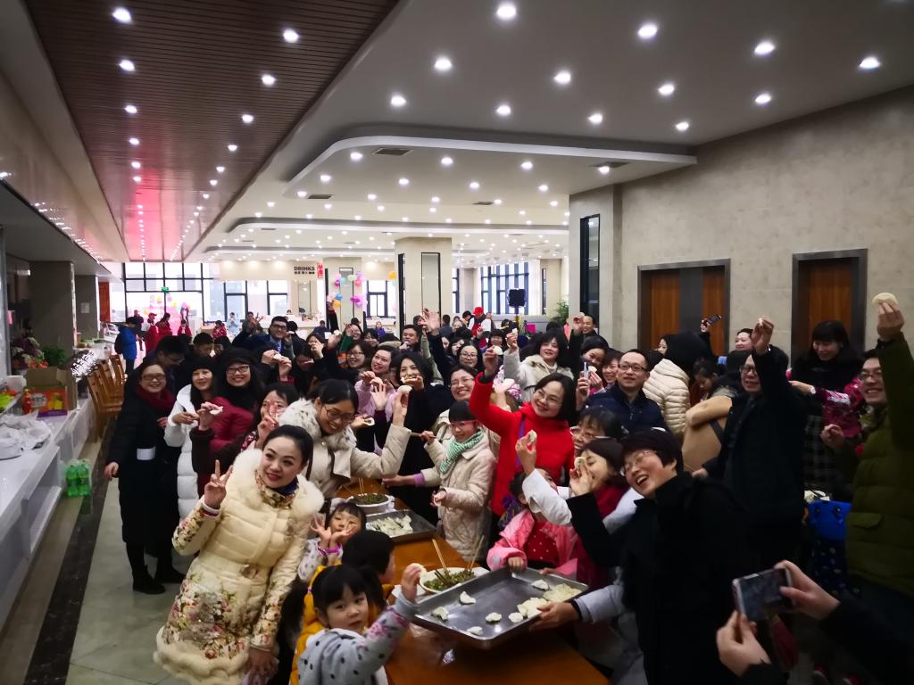 教职员工的多姿风采。在随后的游戏环节和包饺子竞赛中,参赛选手摩拳擦掌、你争我夺,热闹的氛围为新年带来了最好的注解。联欢会的另一抹浓色则是数十名教职工子女的加入,他们的天真、活泼为联欢会注入了更多的生机和暖意。