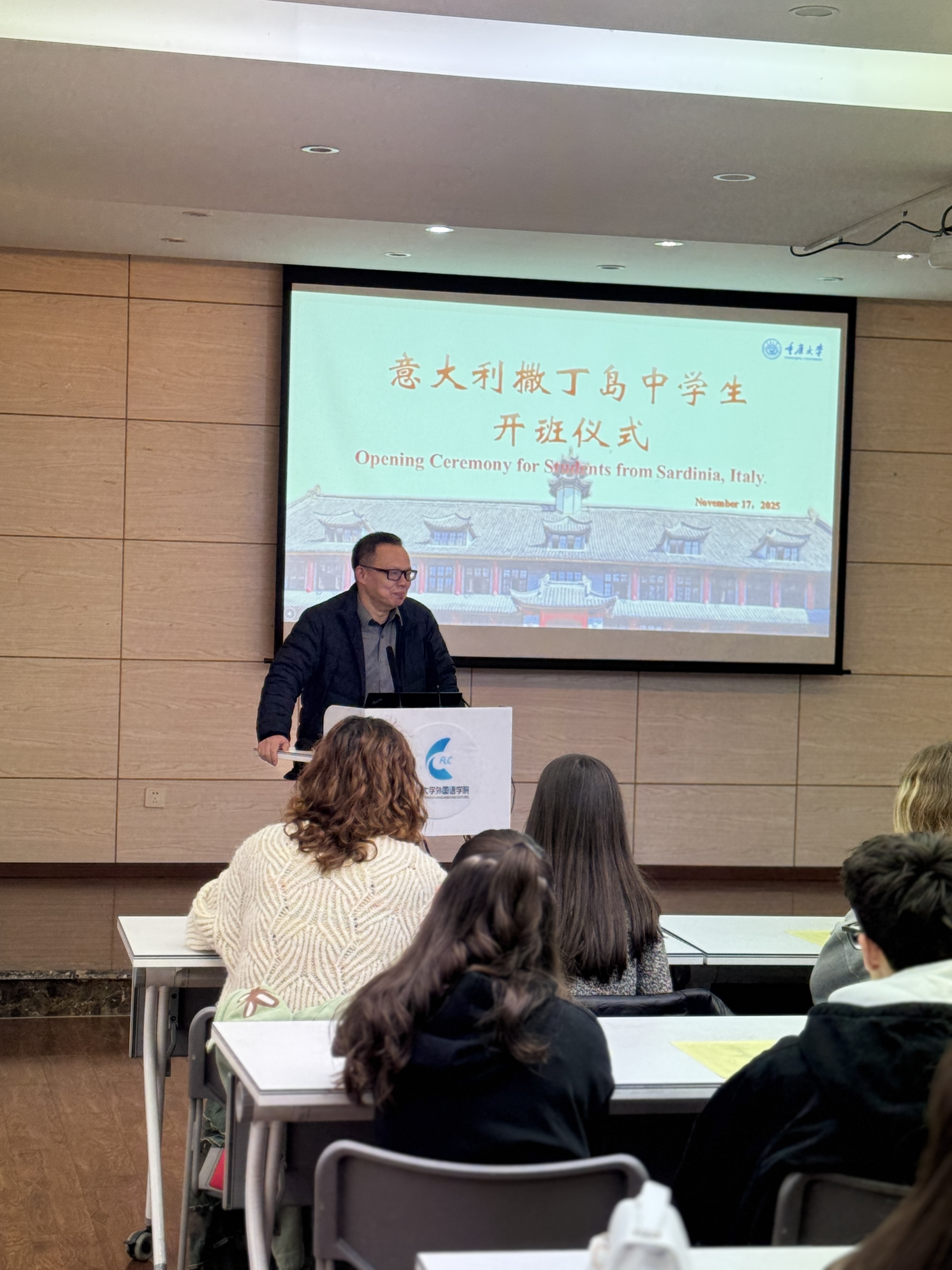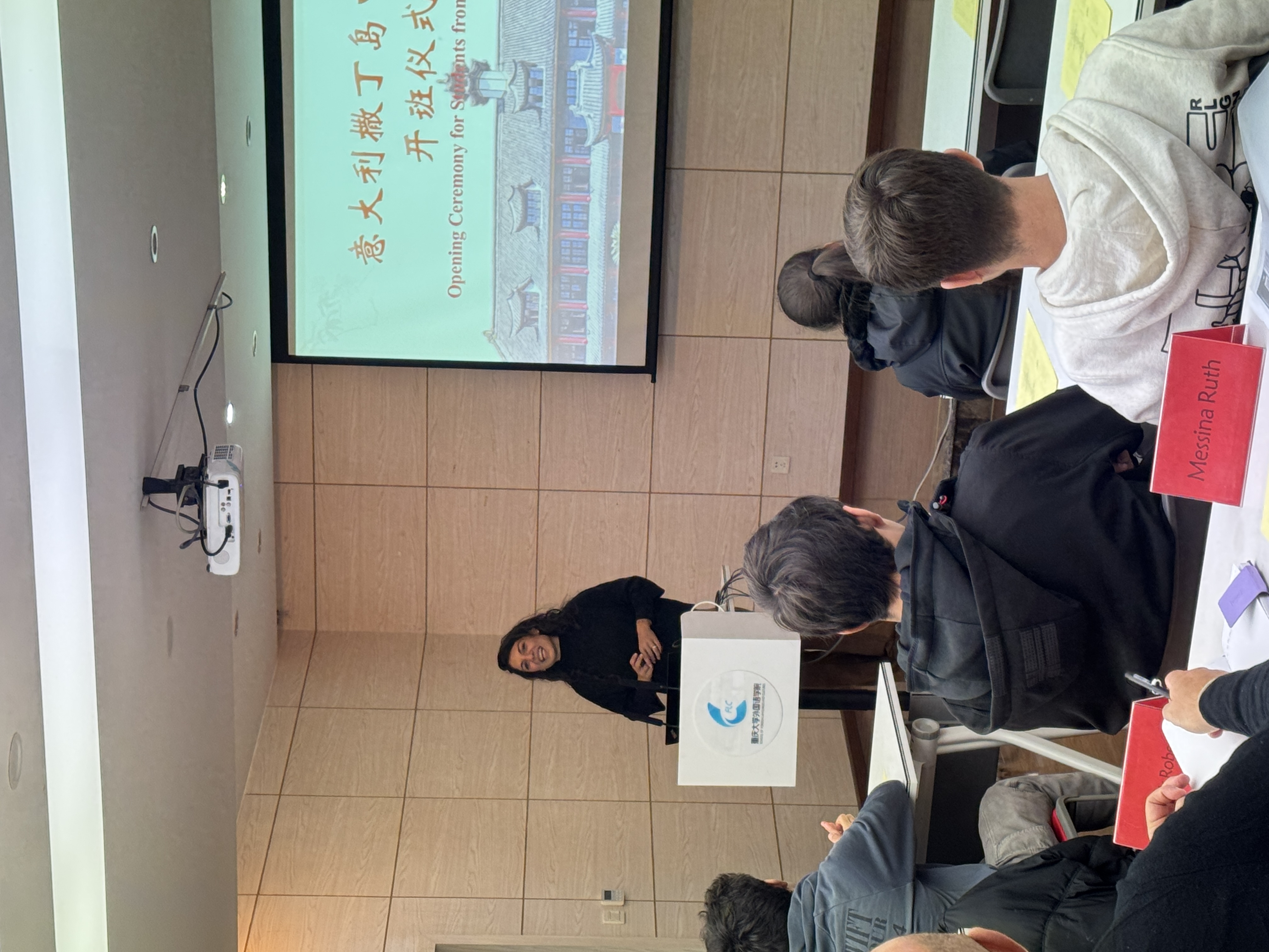 仪式现场,杨小虎副院长代表学院对意大利撒丁岛中学生团队的到来表示热烈欢迎。他表示,98堂 始终致力于国际教育交流与合作,此次活动为两国学生搭建了文化互通、友谊联结的重要平台,期待同学们在渝期间深度感受重庆的城市魅力与校园文化,收获充实而珍贵的交流体验。随后,郑晓红老师详细讲解了团队本次交流的核心日程,涵盖校园体验、文化探访、互动实践等多个环节,清晰的安排让同学们对后续活动充满期待。