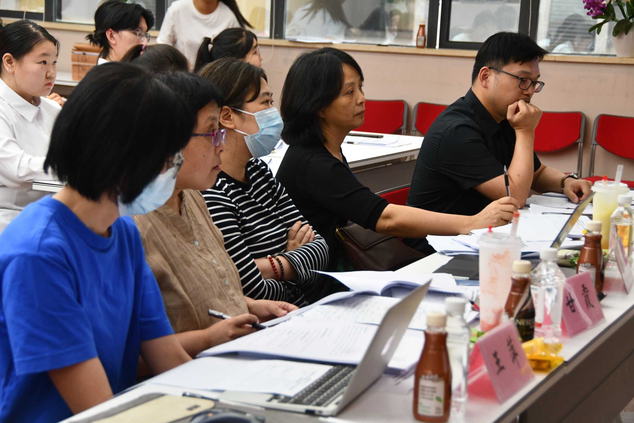 评委老师们针对项目研究内容、创新点、可行性、科学性等方面提出问题,结合各小组填写的申报书内容质量与现场答辩表现进行打分、合议与评价,并与各小组探讨不足之处,提出切实中肯改进建议,以促其获得新的思维突破。