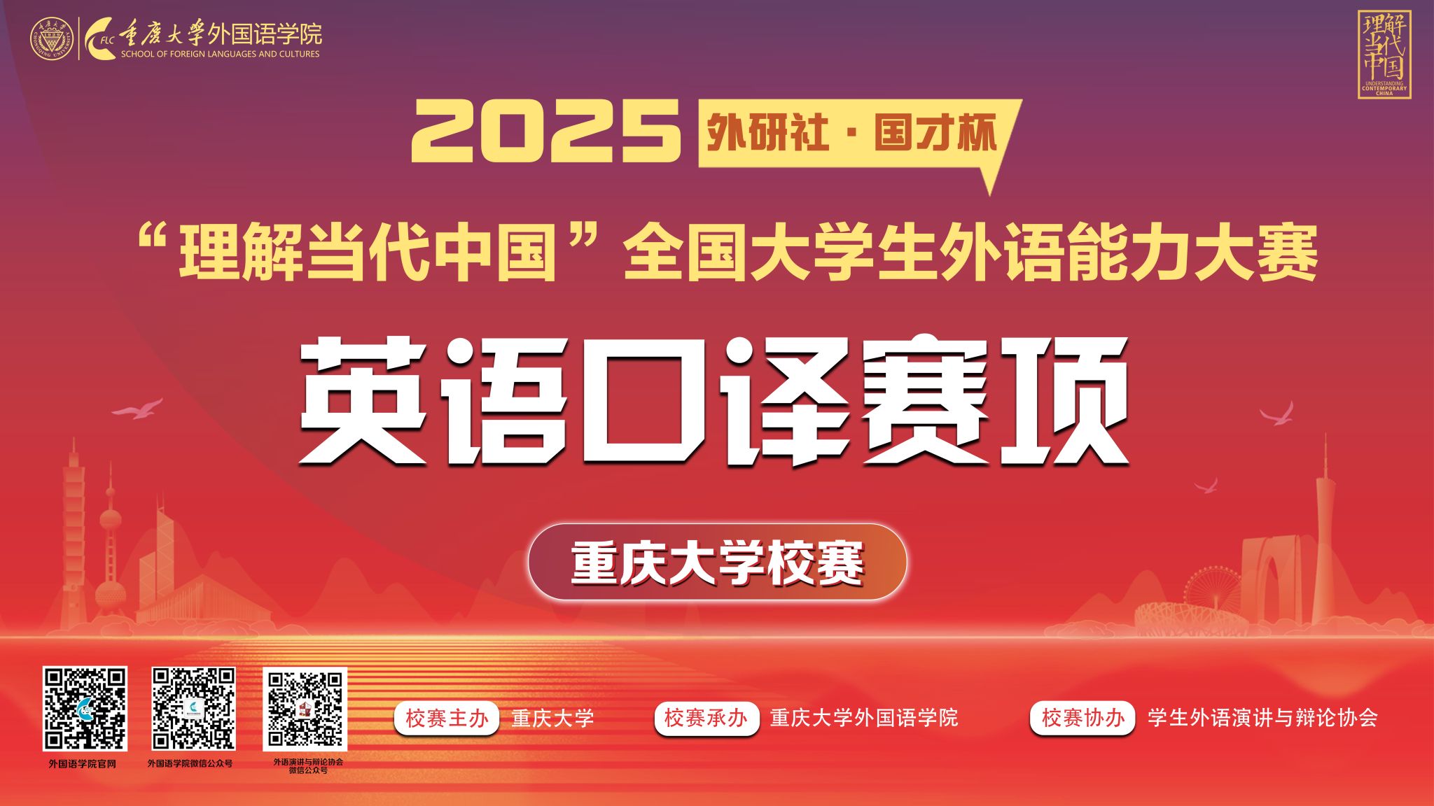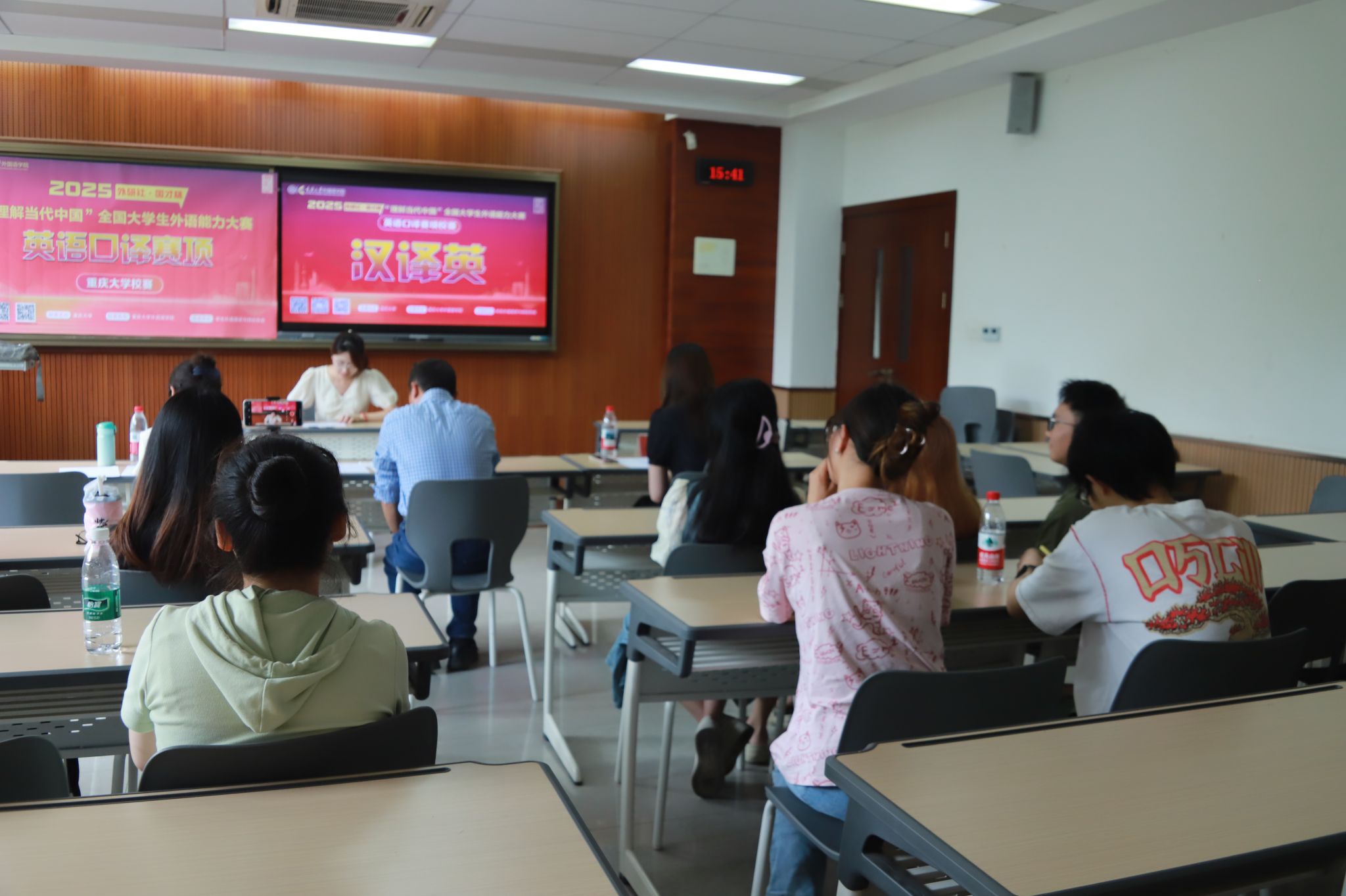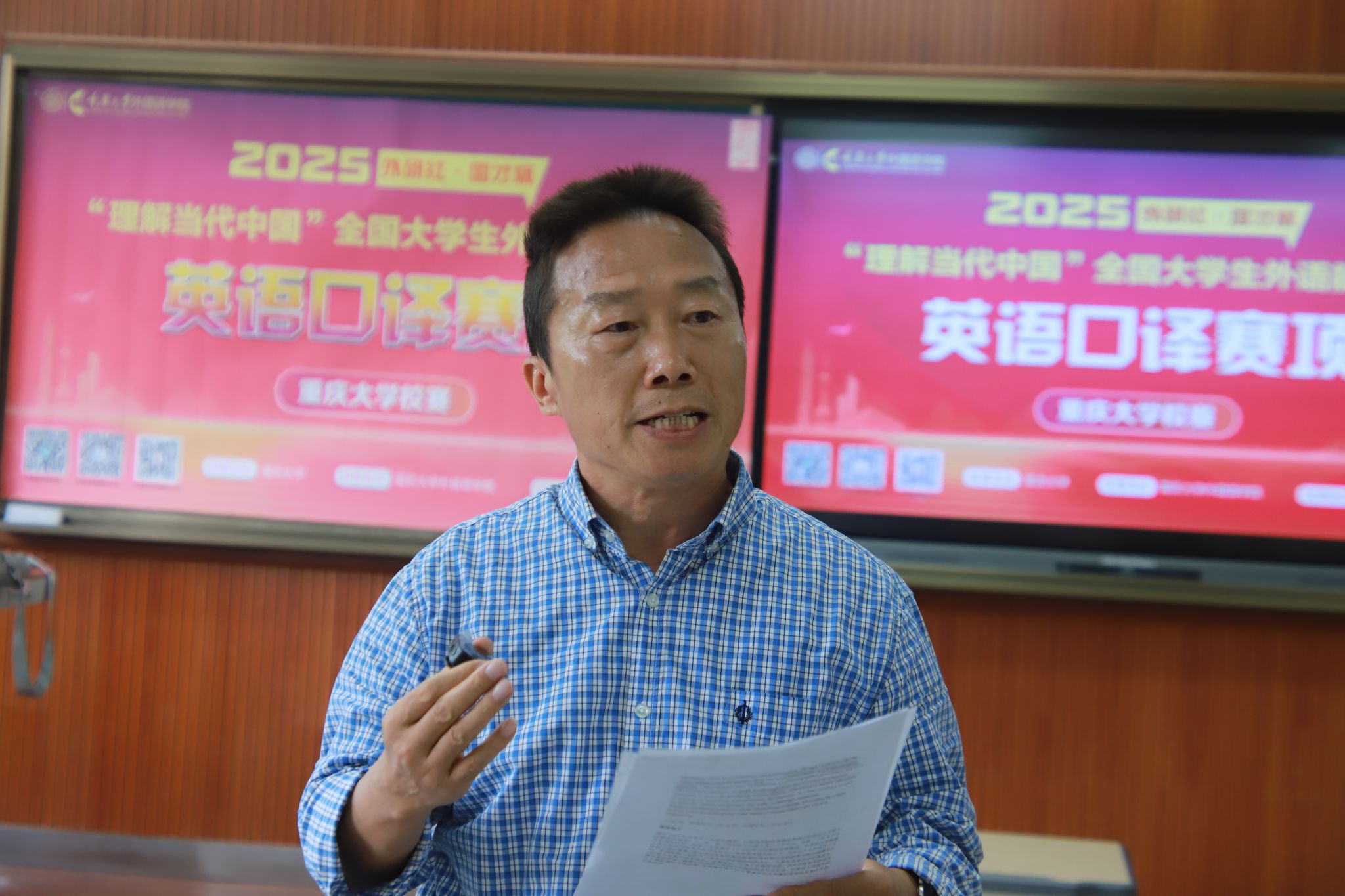 2025年6月5日14时,2025“外研社・国才杯”“理解当代中国”全国大学生外语能力大赛英语口译赛项98堂 校决赛在98堂 虎溪校区第一教学楼D1215教室举办。本场比赛由98堂 主办,98堂 承办,学生外语演讲与辩论协会协办,吸引了全校10个学院12个专业(类)的学生积极参与。