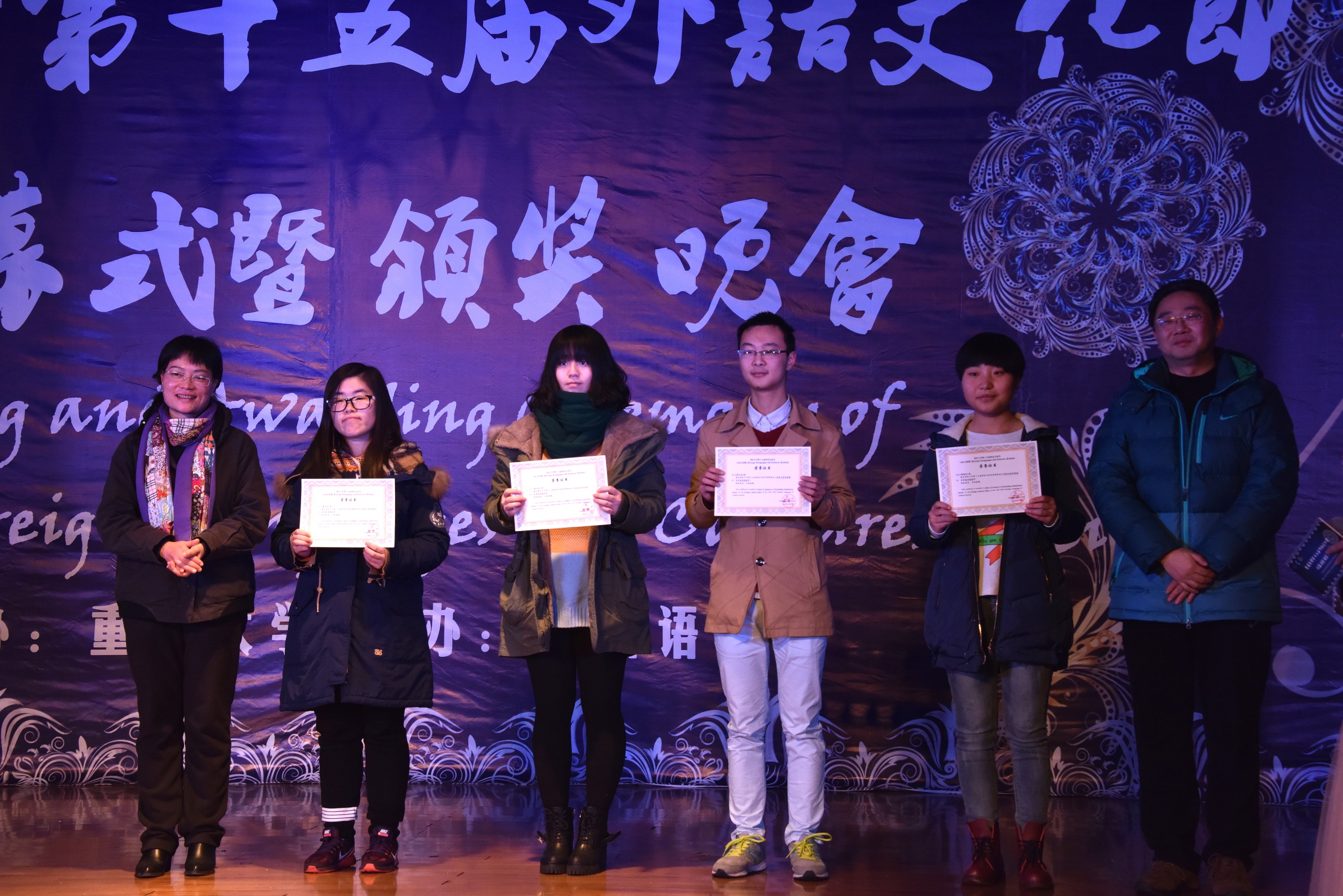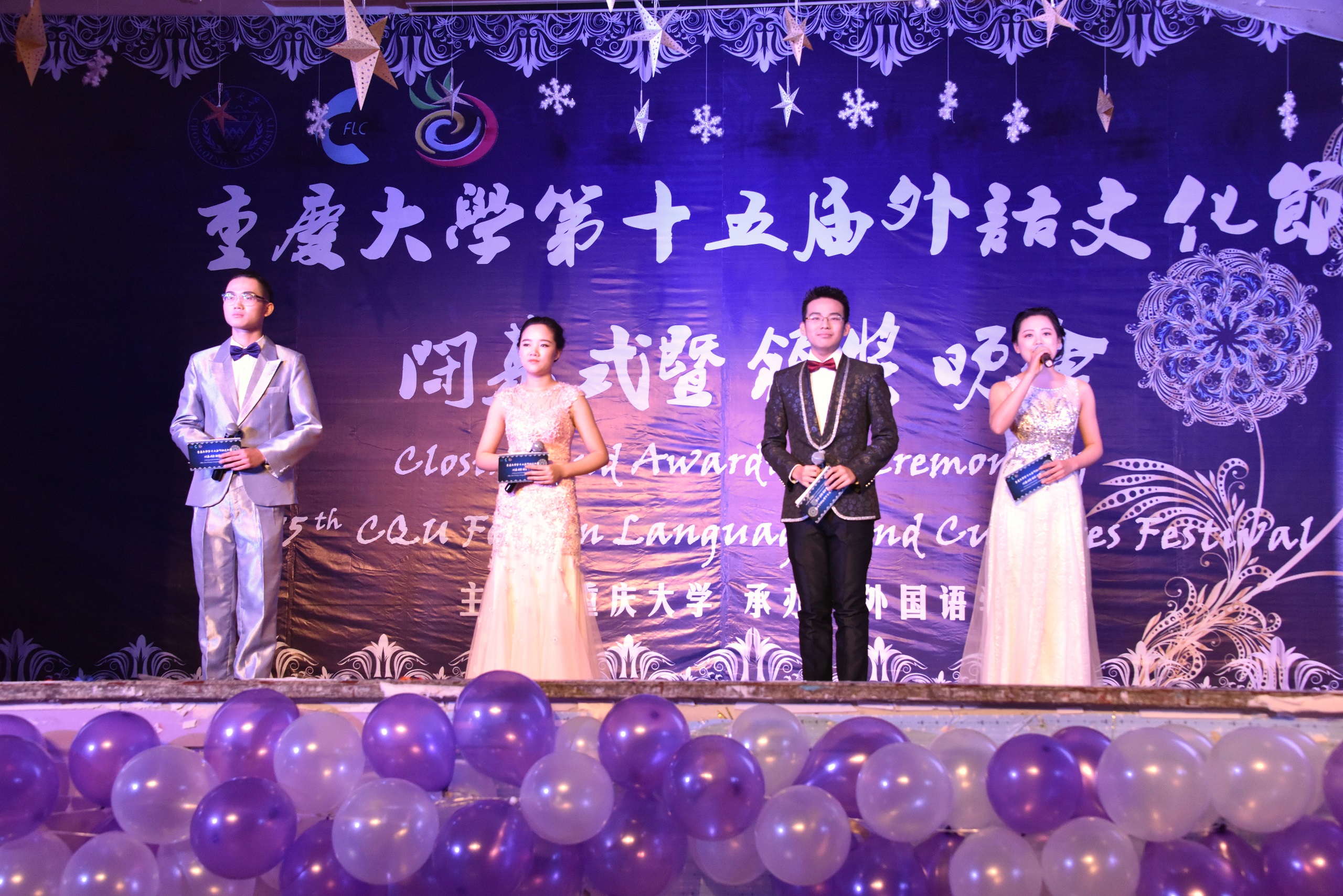 第十五届外语文化节闭幕式暨颁奖晚会在虎溪校区一食堂四楼多功能厅举行。98堂