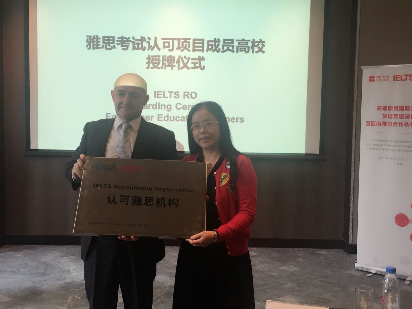 副院长(主持工作)彭静教授、培训中心主任张科代表学院接受了“认可雅思机构”的授牌。