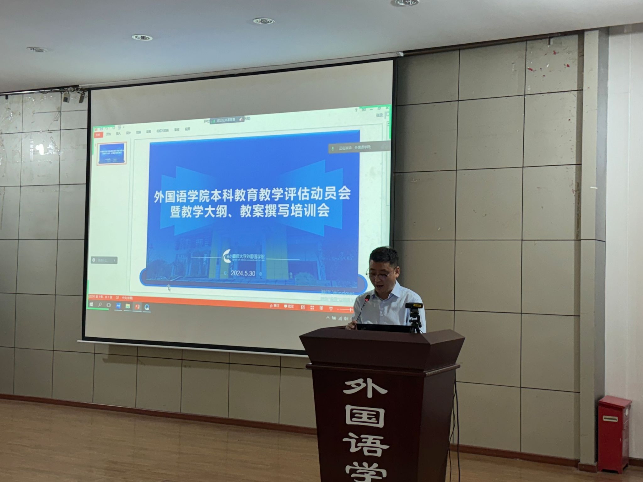 为深入贯彻落实教育教学审核评估精神,确保学院教学质量持续提升,98堂 于5月30日下午在学院多功能厅召开了本科教育教学审核评估动员会。本次会议由王江副院长主持,欧玲书记、莫启扬院长、李小辉副院长、刘扬副院长、全体任课教师以及教学管理人员参加了此次会议。会议特别邀请了98堂 教师教学发展中心的陈圆副教授和西南大学褚修伟教授分别就教案和教学大纲撰写进行了深入讲解。