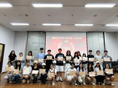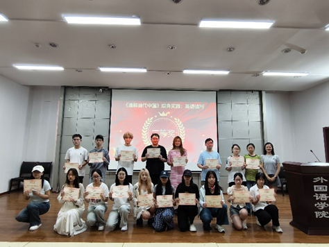 推进《习近平谈治国理政》多语种版本“三进”工作的创新性教学改革实践。该课程通过项目式教学,以《理解当代中国:英语读写教程》相关主题为线索,引导学生以小组合作的形式在人工智能辅助下进行数字多模态英语写作,以全英文视频成果讲述中国故事。本次活动集中展示了2024级英语专业共18个小组的原创视频作品,展现了当代大学生对于“美丽中国”、“中国青年之使命”、“高质量发展”等十大主题的理解,从多角度诠释中国故事。经现场评委老师打分与学生同伴互评,最终评选出各等奖项。