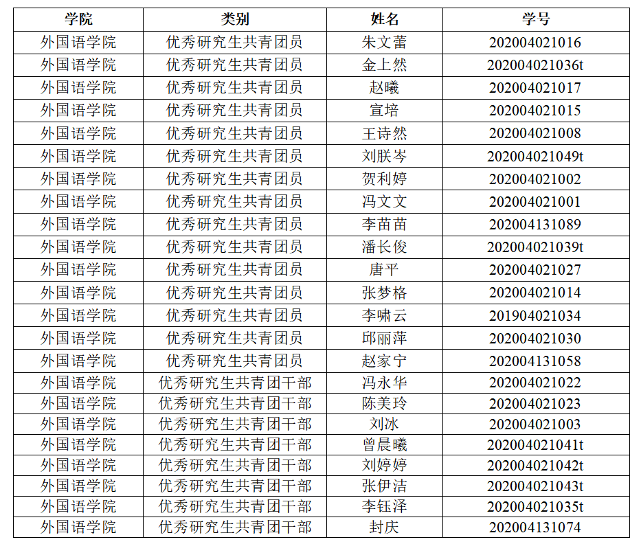 各位同学,2021年度98堂 “优秀研究生共青团员”和“优秀研究生共青团干部”评选工作已完成。