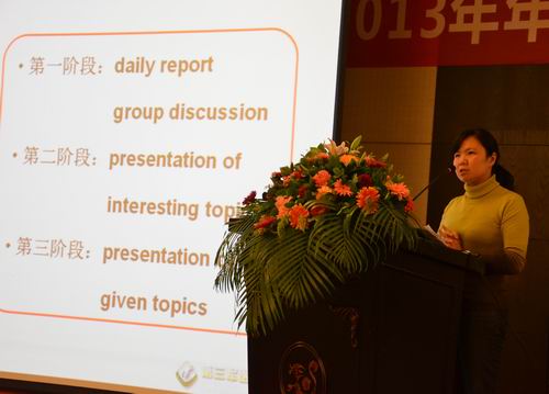 重庆市各高校一直以来积极探索大学英语教学新模式,寻求教学改革新途径,此次年会邀请了几所高校就大学英语课程改革的创新举措做了主题发言。第三军医大大学外语系张赟老师介绍分享了她所在学校的外语教学的特色。军医大的英语教学,在其学校领导及教务处的大力支持下,以实施教育部《大学英语课程教学要求》、实现学校“建设世界医学名校,培养国际医学人才”的发展战略和满足不同层次学生的学习需求为目的,进行了本科学术英语口语教学的实践。举办本科生国际学术论坛等活动极大地锻炼了学生的语言能力。其探索英语教学改革创得到了学生的喜爱和媒体的肯定。